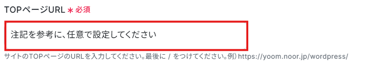 - WooCommerceをYoomと連携する際に、ご利用のECサイトのTOPページのURLを任意で設定してください。
