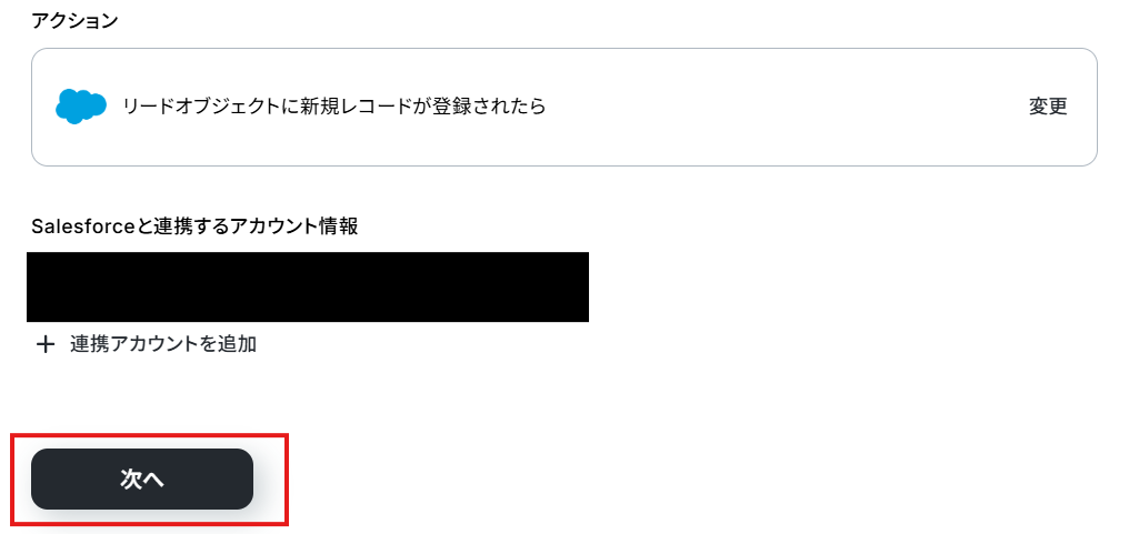 「Salesforceと連携するアカウント情報」を確認しましょう。