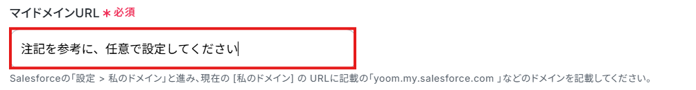- SalesforceをYoomと連携する際に、ご利用の環境に応じた任意のマイドメインURLを設定してください。