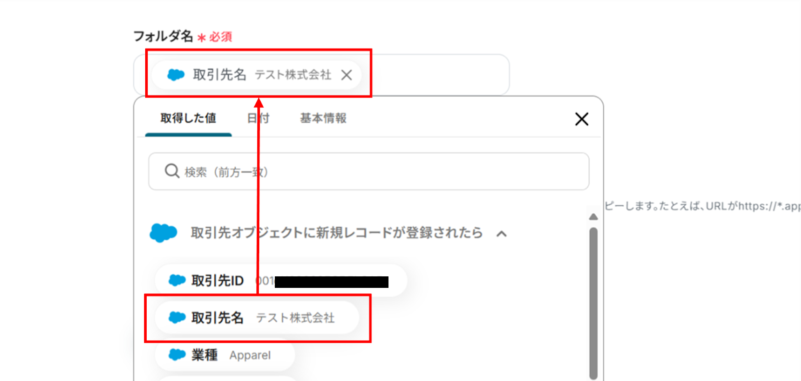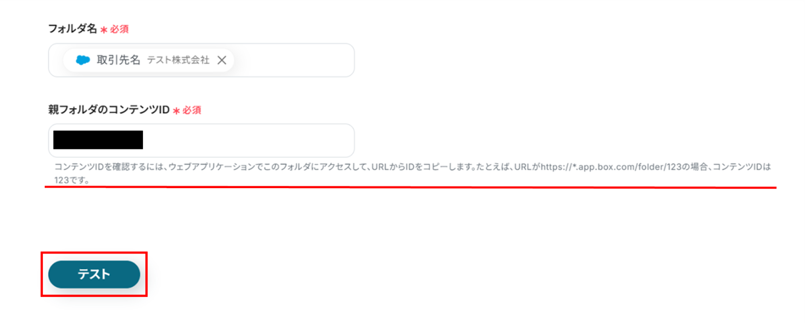 Salesforceに新しい取引先が登録されるたびに、その取引先名をフォルダ名としてBoxに自動でフォルダを作成する連携です。