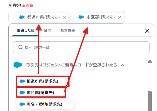 4.必須項目の「所在地」はアウトプットを活用して設定します。