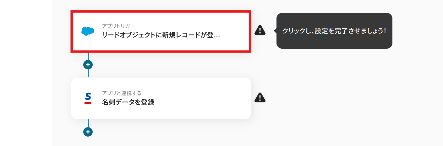 1.まず、一番上の「リードオブジェクトに新規レコードが登録されたら」のアイコンをクリックします。