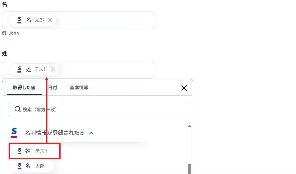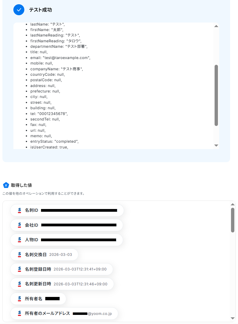 ※以下のように取得した値を設定することで、トリガーが実行されるたびに最新の名刺情報を反映できます。