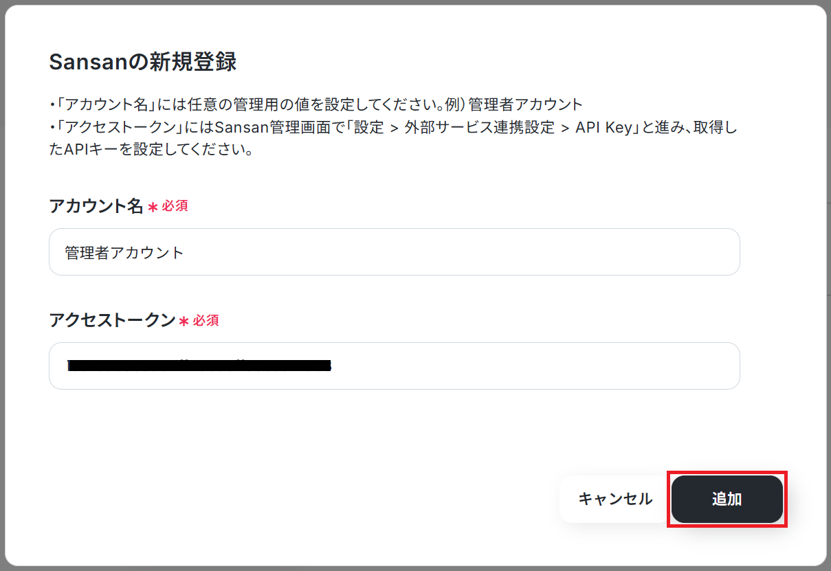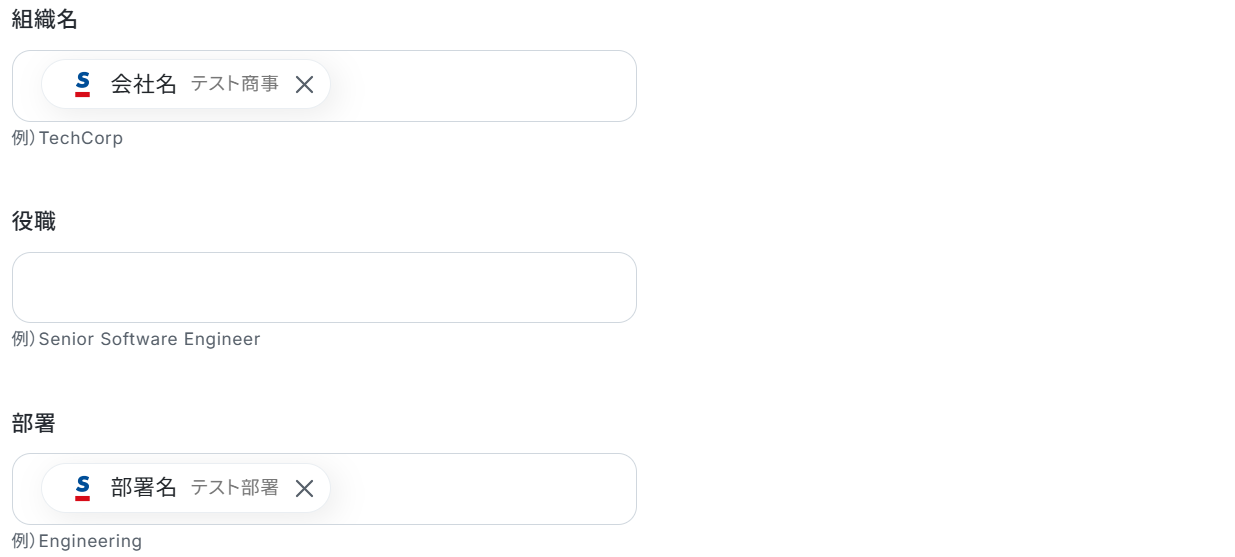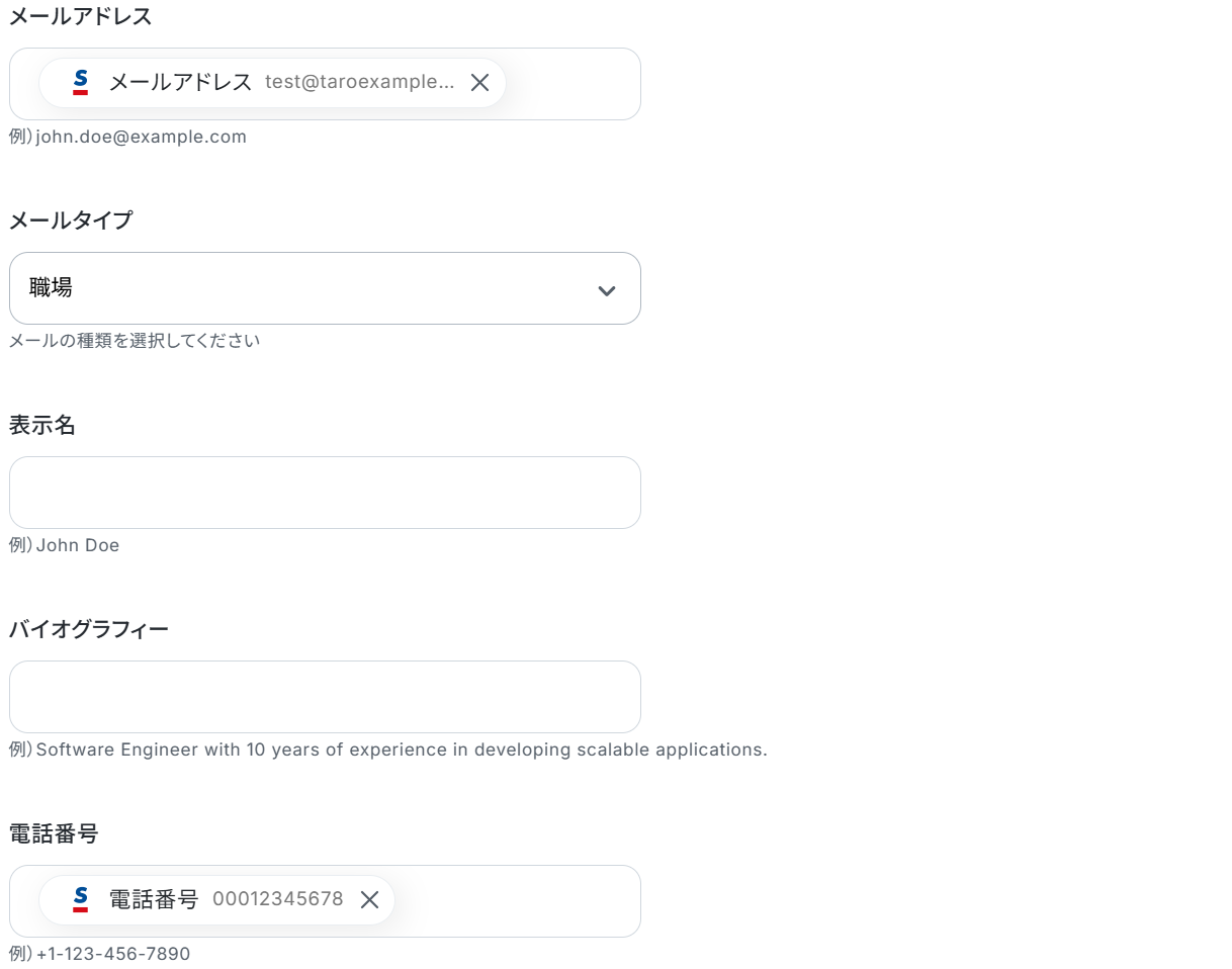 Sansanから取得した値を設定して、登録したい項目を埋めていきましょう。 ただし各項目は任意なので、全てを埋める必要はありません。