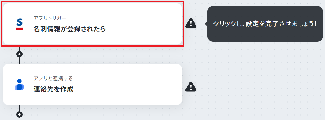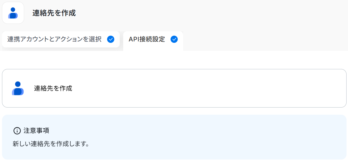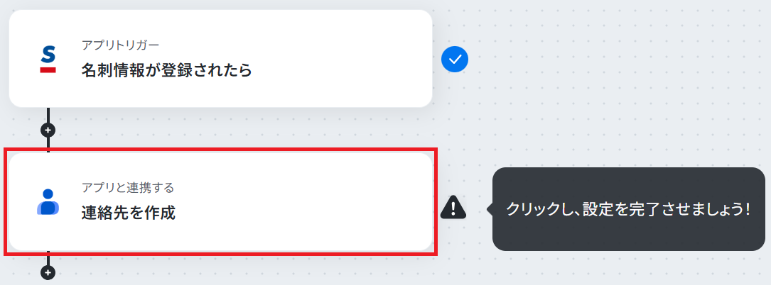 ステップ4:Googleコンタクトのアクション設定 先ほど取得したSansanの名刺情報を、Googleコンタクトに自動で登録します。 「連絡先を作成」をクリックしてください。