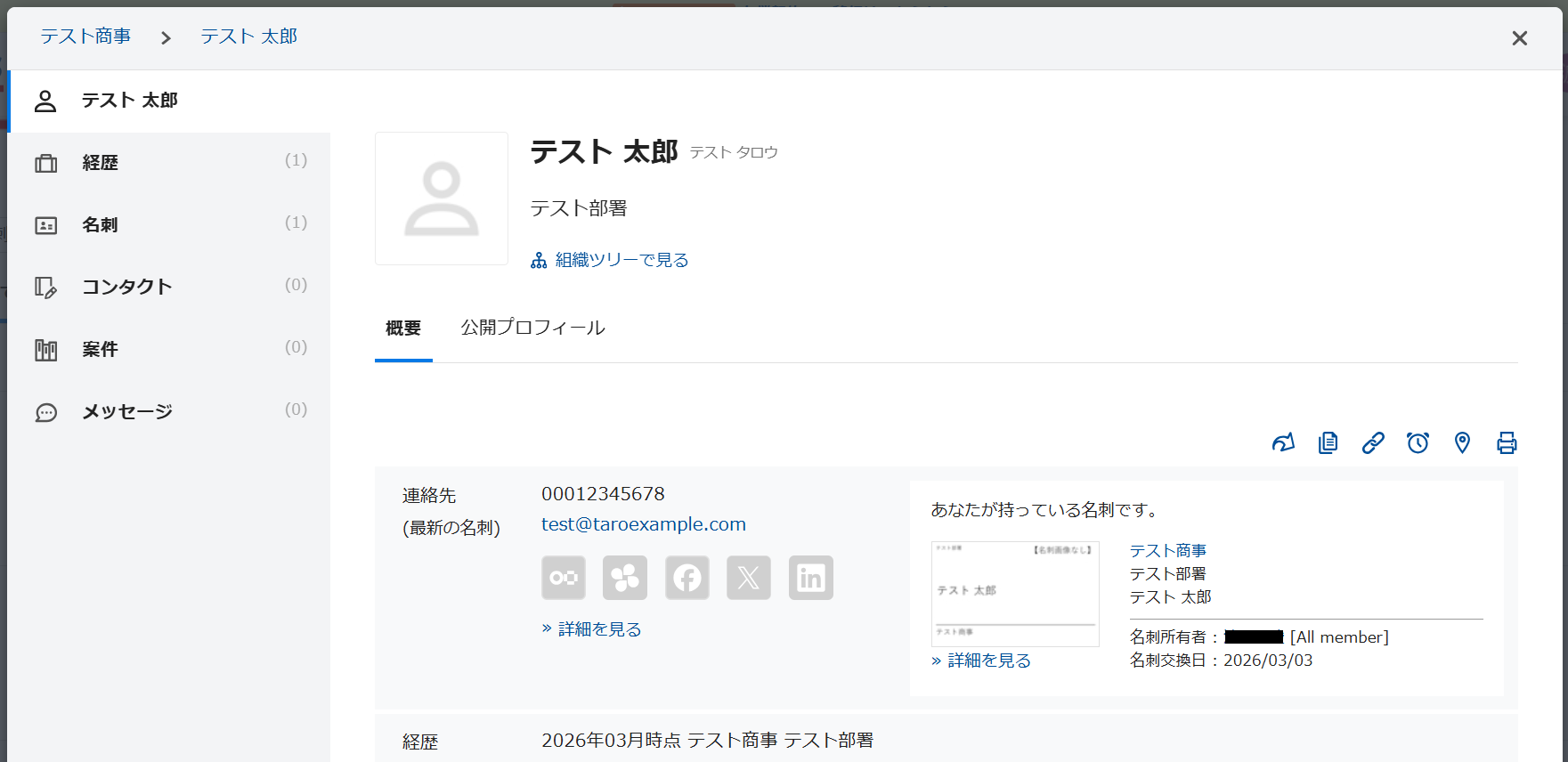 ステップ3:Sansanのトリガー設定 はじめに準備として、テスト用の名刺をSansanに登録してください。
