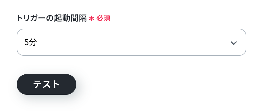 - トリガーは5分、10分、15分、30分、60分の間隔で起動間隔を選択できます。