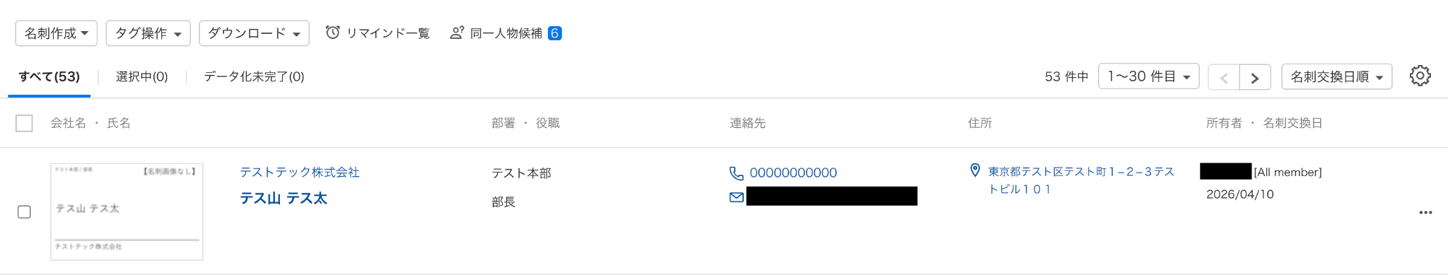事前準備としてSansanで名刺情報を登録しておきましょう。