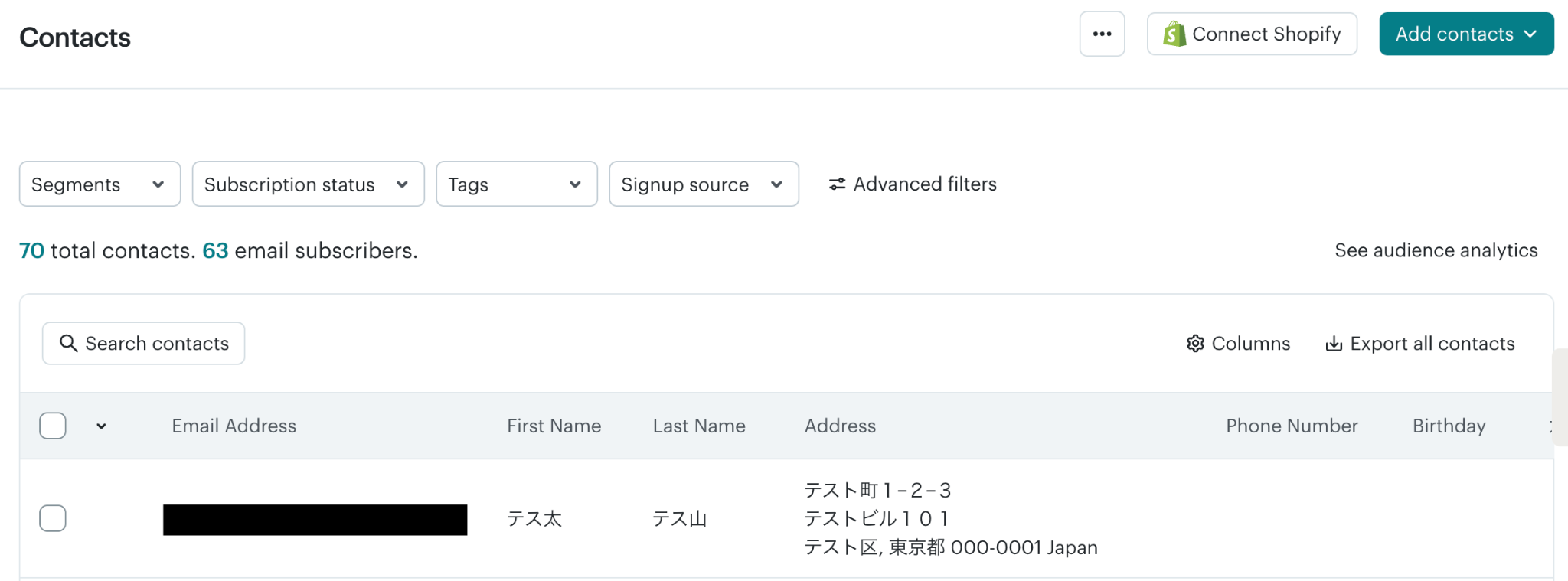 ステップ4:Mailchimpでコンタクトをオーディエンスに追加