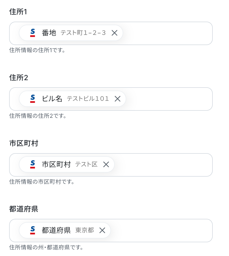 こちらもメールアドレスと同様に、入力欄をクリックすると取得した値が表示されるので選択して入力ができます。