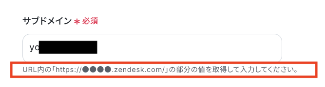 Zendeskのトリガー設定では、連携したいZendeskアカウントのサブドメインを任意で設定してください。 Codaのオペレーション設定では、行を追加したいドキュメントのIDとテーブルのIDをそれぞれ設定してください。 ■注意事項