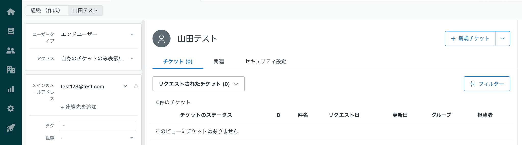 他の項目は任意項目なので、必要に応じて設定してください。 全ての項目の設定が完了したら「テスト」をクリックしましょう。 テストに成功したら、Zendeskにデータが反映されているか確認します。 確認できたら「完了」をクリックします。
