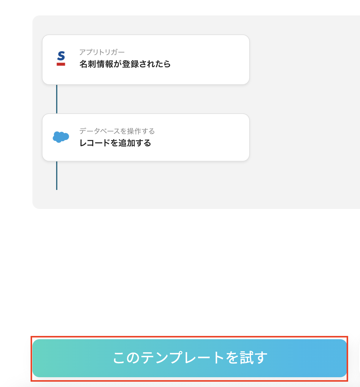 YoomにはSansanに名刺情報が登録されたらSalesforceに登録する連携するためのテンプレートが用意されています。