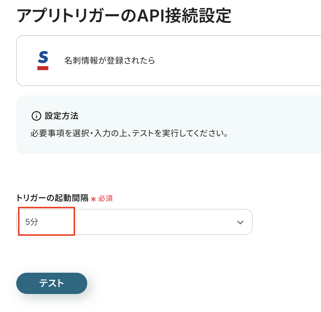 設定後、Sansanに移動して、名刺情報を登録してください。名刺情報が登録できたら、Yoomに戻りテストを実行しましょう。