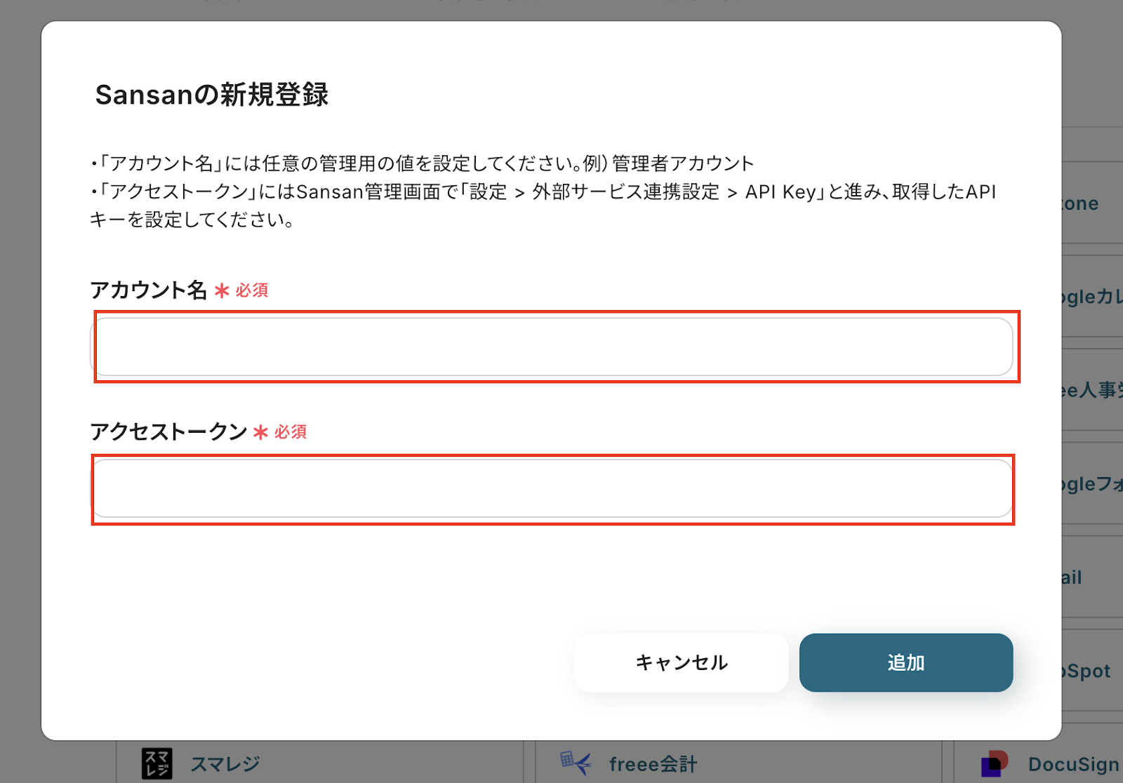 アクセストークンはSansanの管理画面からAPI キーを取得し、入力してください。