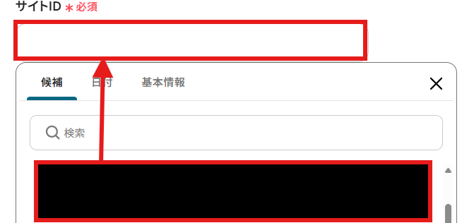 「サイトID」と「フォルダID」を候補から選択しましょう。
