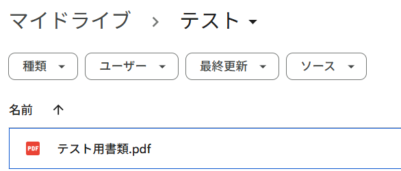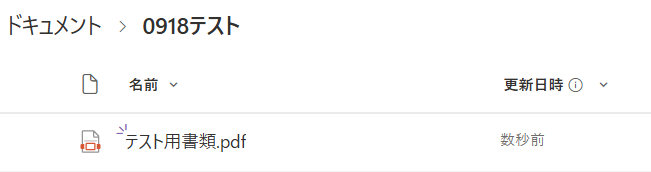 今回は例として「0918テスト」というフォルダに「テスト用書類.pdf」を作成しました!