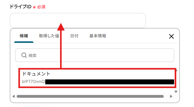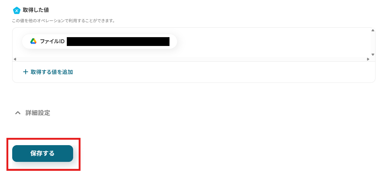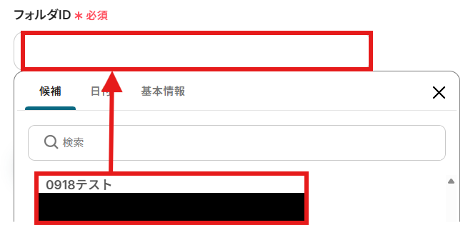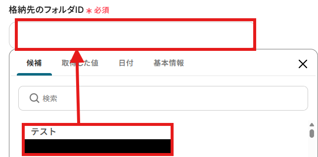「格納先のフォルダID」を候補から選択しましょう。