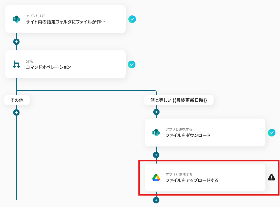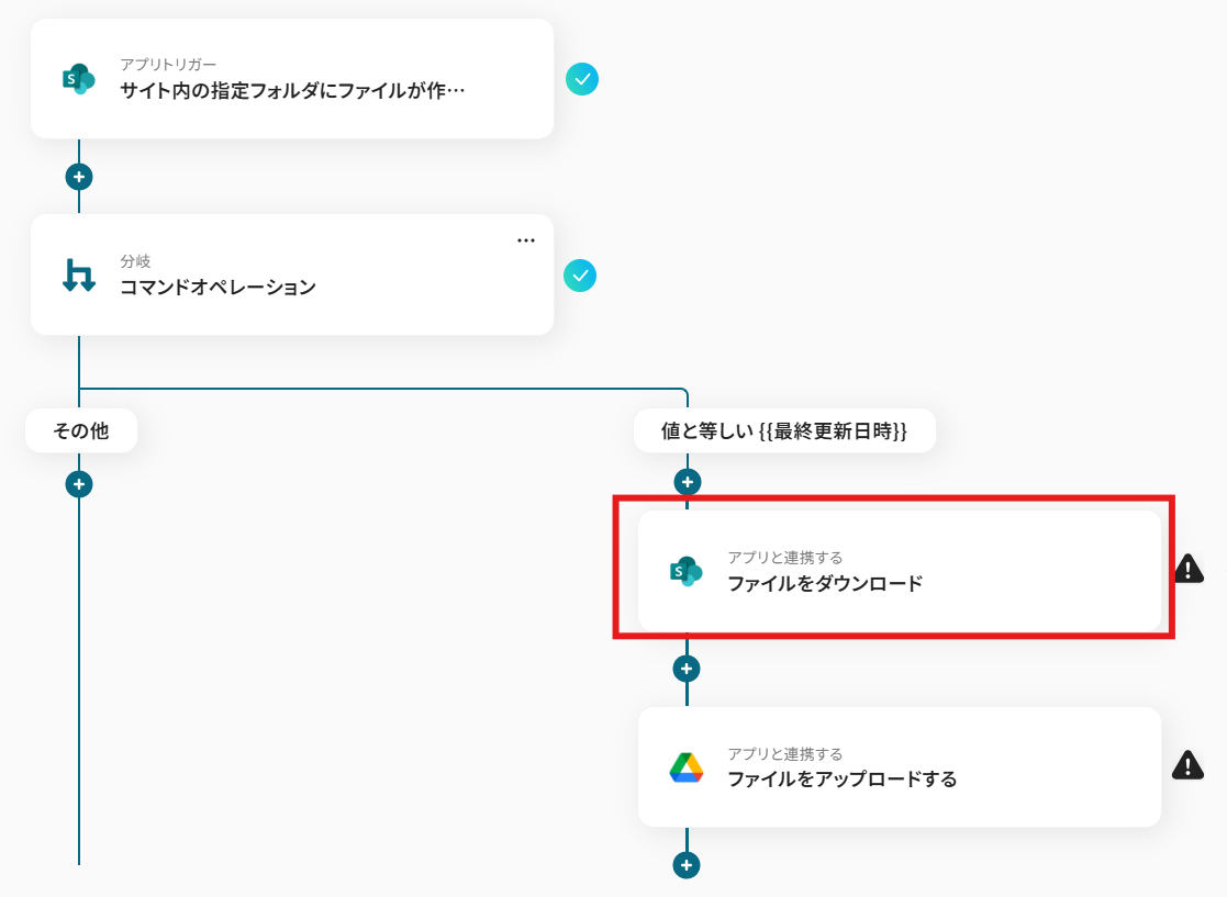 このワークフローを活用すれば、Microsoft SharePointとGoogle Driveをスムーズに連携させることが可能です。