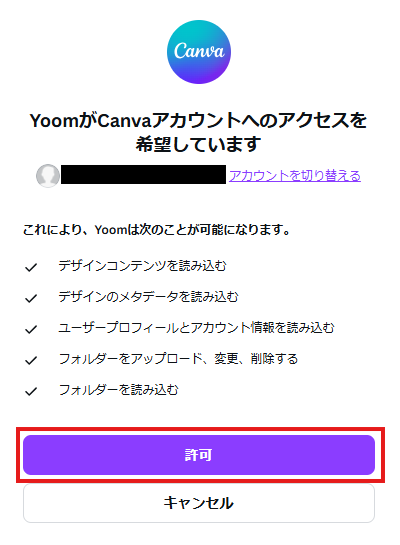 5.以下画像のように、アクセス許可画面が表示されるので、「許可」をクリックします。
