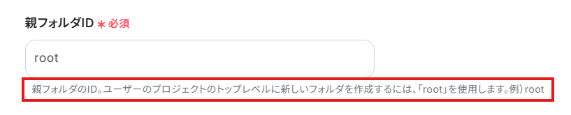 3.「親フォルダID」は、入力欄下の注釈に沿って、以下画像のように設定しました。