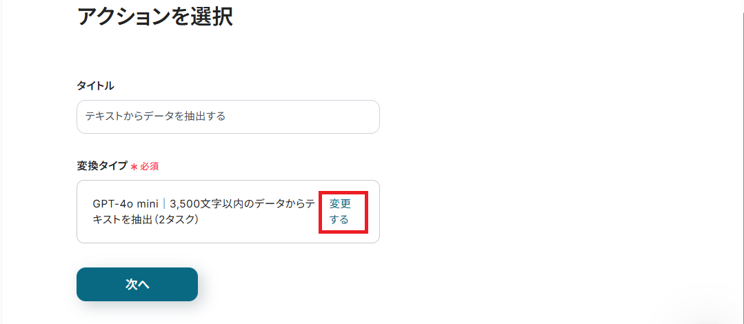 続いて、「テキストからデータを抽出する」という項目を設定しましょう。
