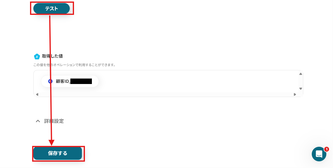 テストを実行すると、抽出した情報が取得した値(アウトプット)に表示されますので確認し、問題が無ければ設定を保存しましょう。
