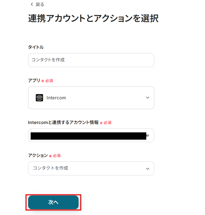 連携するアカウント情報には、ステップ1で連携したアカウント情報が反映されています。
