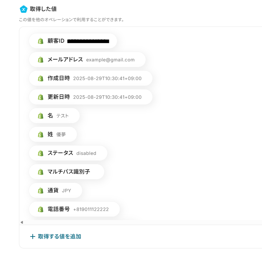 取得した値は、後続の設定で活用できます!