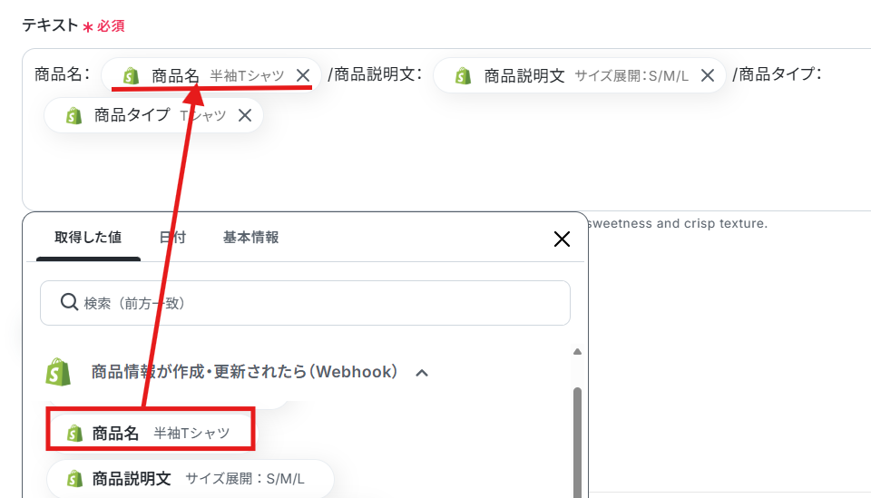 「商品情報が作成・更新されたら(Webhook)」という項目をクリックしてください。