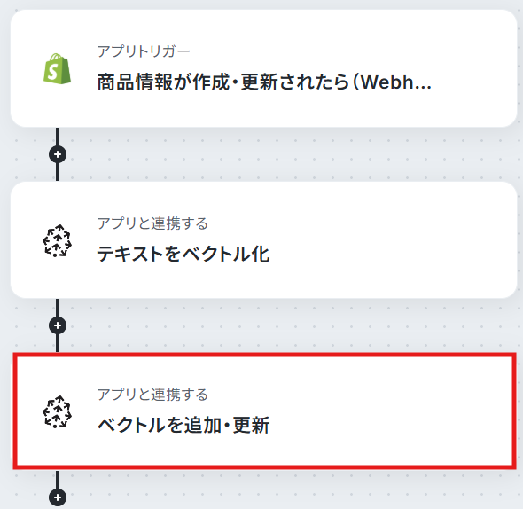 これで、「Shopifyで商品情報が作成・更新されたらPineconeのベクトルに同期する」 フローの完成です!