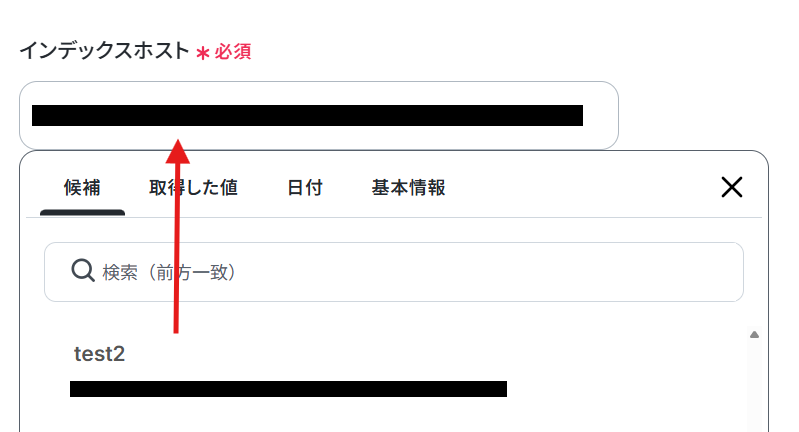 インデックスホストの欄をクリックし、表示される候補から選びましょう。