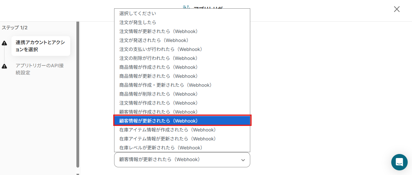 「顧客情報が作成されたら(Webhook)」を押しましょう。