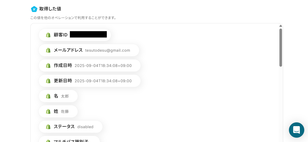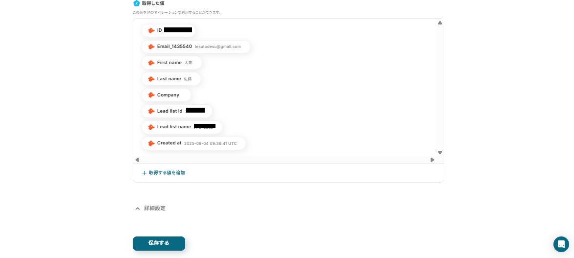 ※取得した値は、この後の設定で活用することができます。詳しくは、こちらのヘルプページをご確認ください。