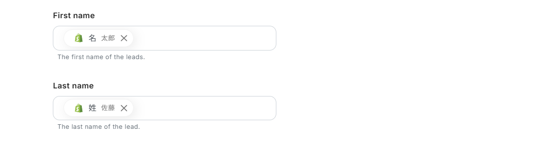 First nameとLast nameもShopifyの顧客情報のデータを自動で引用できるように設定されています。