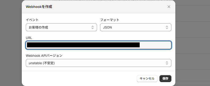Webhook APIバージョンを任意の項目に設定し、「保存」をクリックしたらWebhookの設定は完了です!
