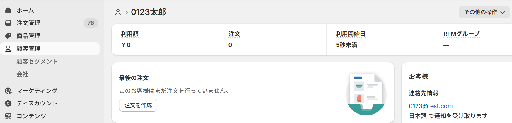 ここでテスト顧客を作成してください。