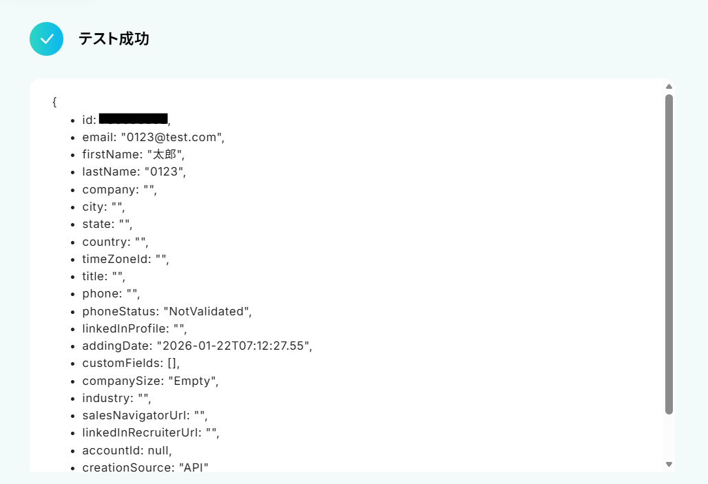 その後Yoomの設定画面に戻り、テストをクリックしましょう。