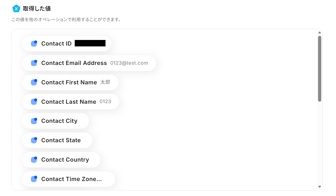 ここで取得した値を次以降のステップで活用します。