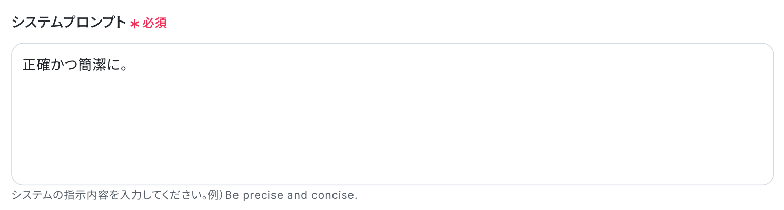 - 「システムプロンプト」は、テンプレートを使用しているため、既に設定されていますが、自由に設定しましょう。
