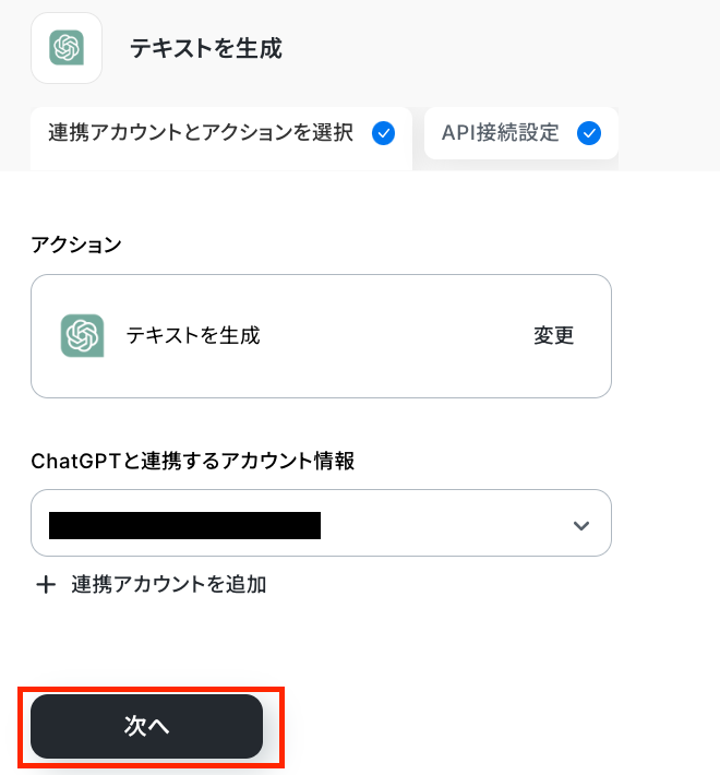- ChatGPT(OpenAI)のアクションを実行するには、OpenAIのAPI有料プランの契約が必要です。(APIが使用されたときに支払いができる状態)