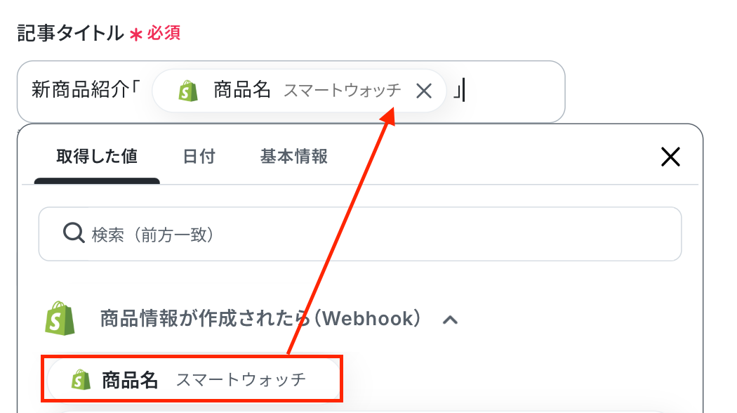 これにより、毎回変動する情報を手動で入力する必要がなくなり、効率的に連携できます!