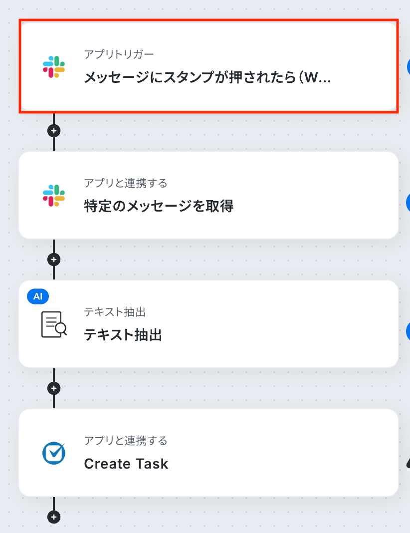 フローの作成方法 今回は「Slackのメッセージにスタンプが押されたら、内容をClio ManageでTask化する」フローを作成していきます!