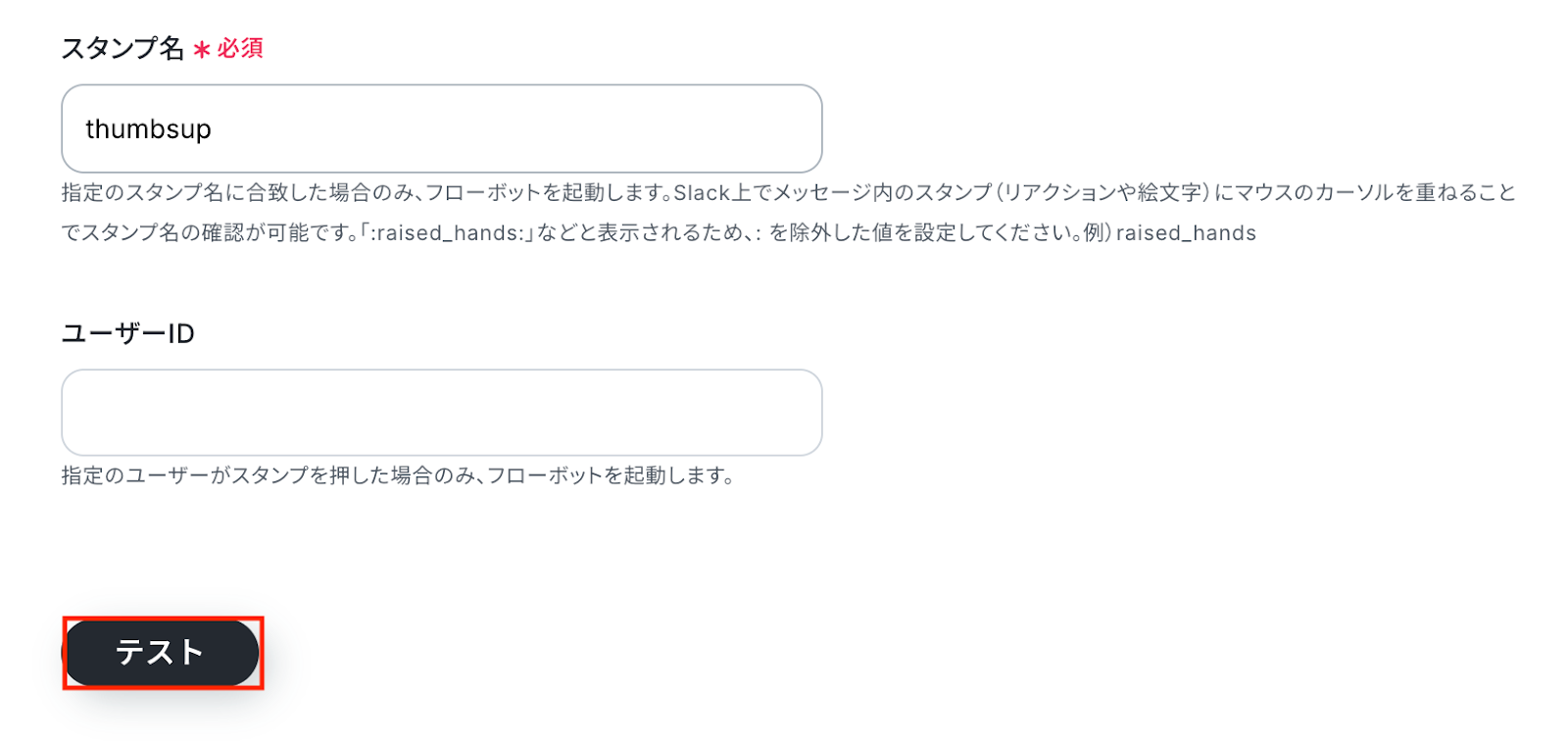 Slackのトリガー設定では、どのチャンネルに投稿されたメッセージを検知の対象とするかを任意で指定できます。また、特定のキーワードが含まれるメッセージのみを対象とするように設定することも可能です。 ■注意事項