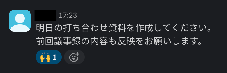事前準備として、Slackで対象のメッセージにスタンプを押しておきましょう。