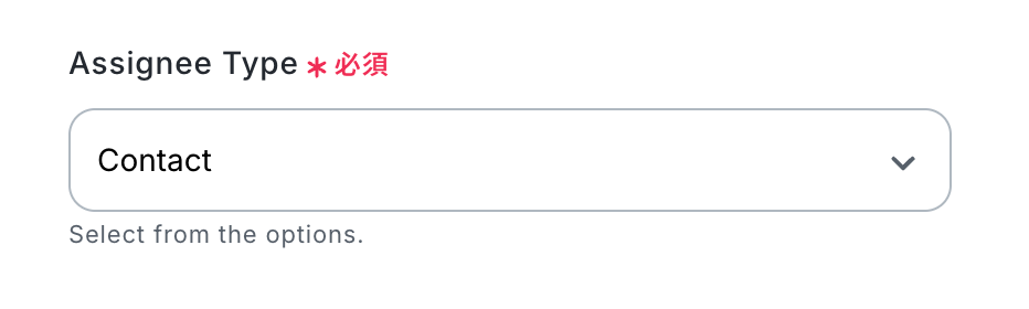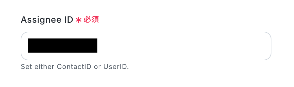 Assignee ID ContactIDもしくはUserIDのどちらか一方を設定してください。