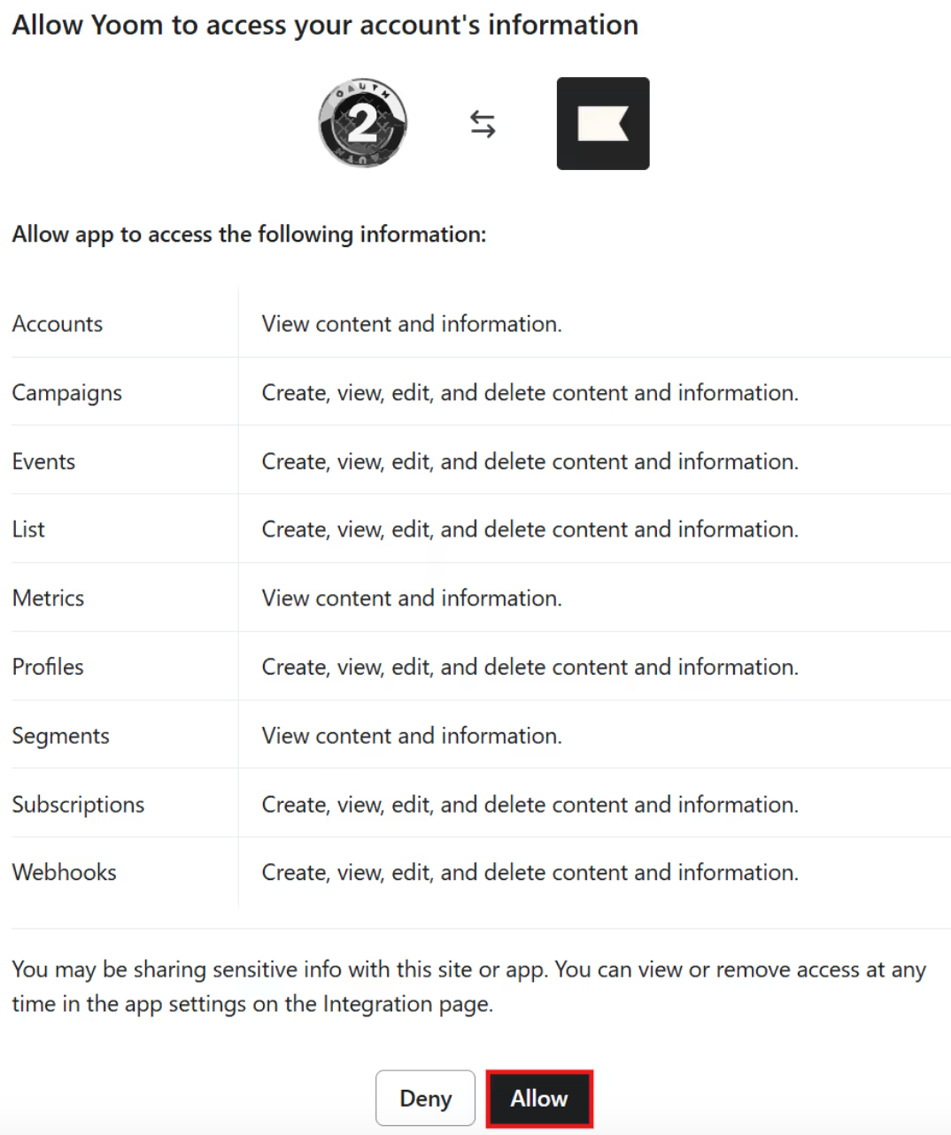 許可をすると、Klaviyoのマイアプリ登録は完了です。