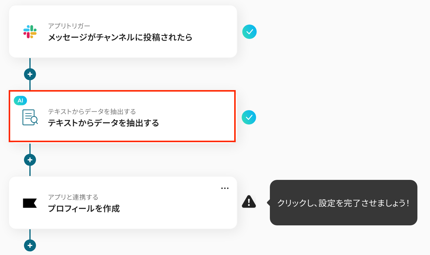 このフローも投稿から必要な情報を抽出する処理を含むため、業務にあわせた柔軟な設定が可能です。