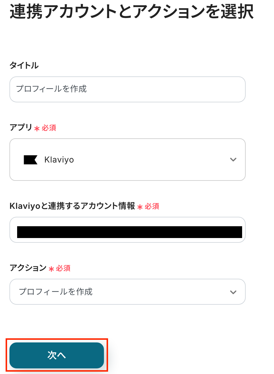 Klaviyoにプロフィールを作成するオペレーションでは、カスタム項目も設定できます。