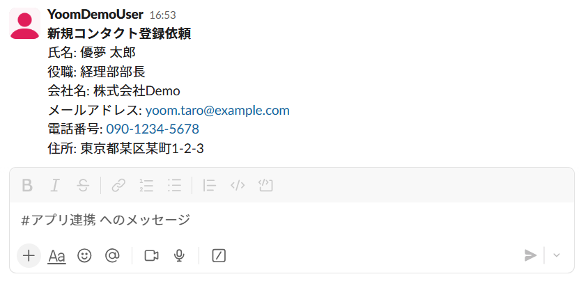 Slackの特定のチャンネルに投稿されたメッセージから、社名や担当者名、連絡先といった情報を自動で抽出し、Apolloに新しいコンタクトとして登録します。